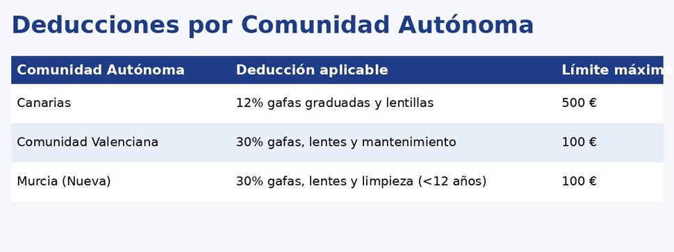 TaxDown, la plataforma que ayuda a los contribuyentes a optimizar su declaración de la Renta, y Alain Afflelou, han emitido un comunicado en el que explican los detalles de este movimiento, que no es generalizado, pero marca tendencia. Canarias, Comunidad Valenciana y, como novedad en 2026, Murcia han incorporado beneficios fiscales vinculados a la corrección visual.