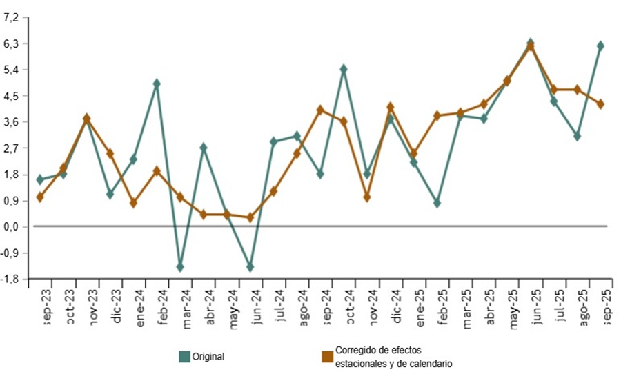 En términos de serie original —sin corregir de efectos estacionales ni de calendario—, el ICM a precios constantes presentó una variación anual del 6,2%, 3,1 puntos por encima del mes anterior, impulsado por el repunte del consumo tras la temporada estival.