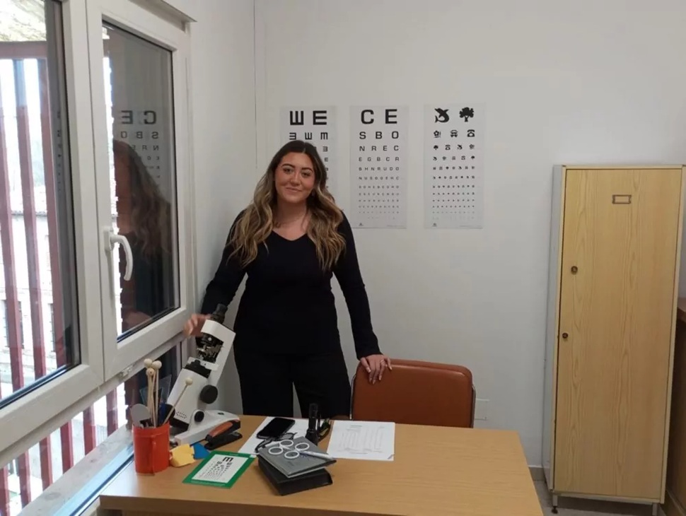Alejandra Rilova, estudiante de último curso del Grado en Óptica y Optometría, desarrolla su Trabajo Fin de Grado bajo el título ‘Estudio poblacional sobre disfunciones visuales en niños en edad escolar’. FOTO: Coocyl