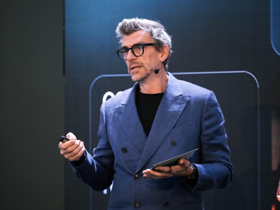 Andrea Pastro, de Nuance Audio, durante la presentación de las ‘gafas auditivas’ en Madrid. FOTO: Essilorluxottica