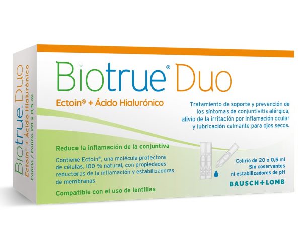 Biotrue® Duo, con Ectoin® y Ácido hialurónico, para la protección y regeneración de la conjuntiva irritada al mismo tiempo que calma e hidrata los ojos secos