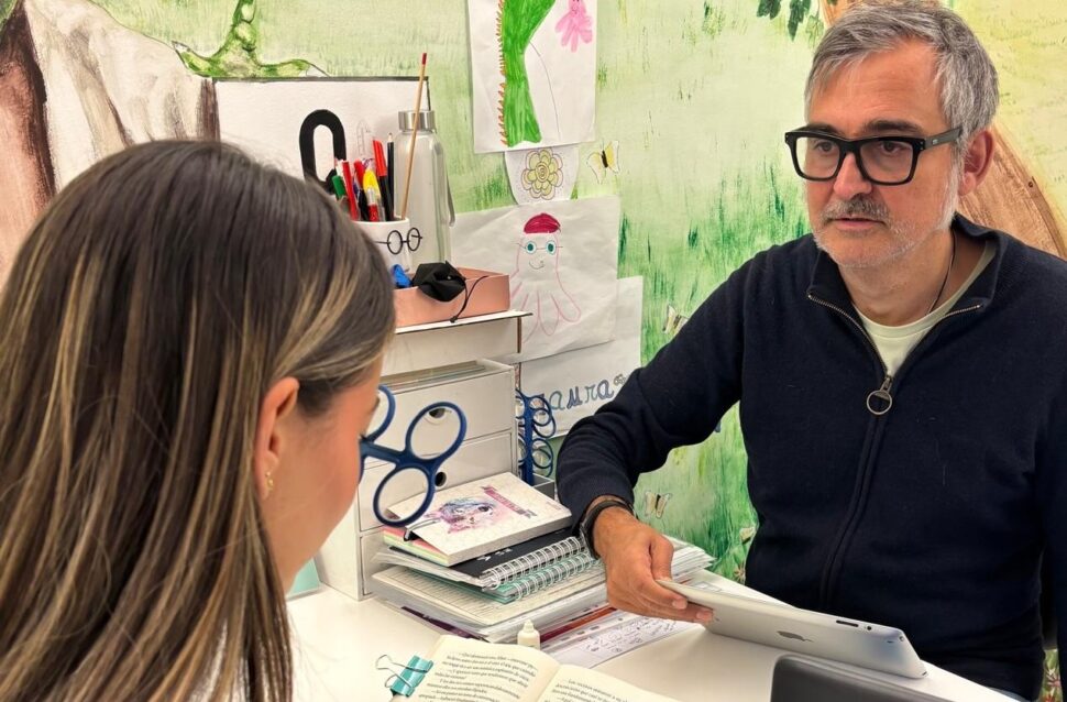 Víctor J. G. Molina hace terapia visual es su óptica.