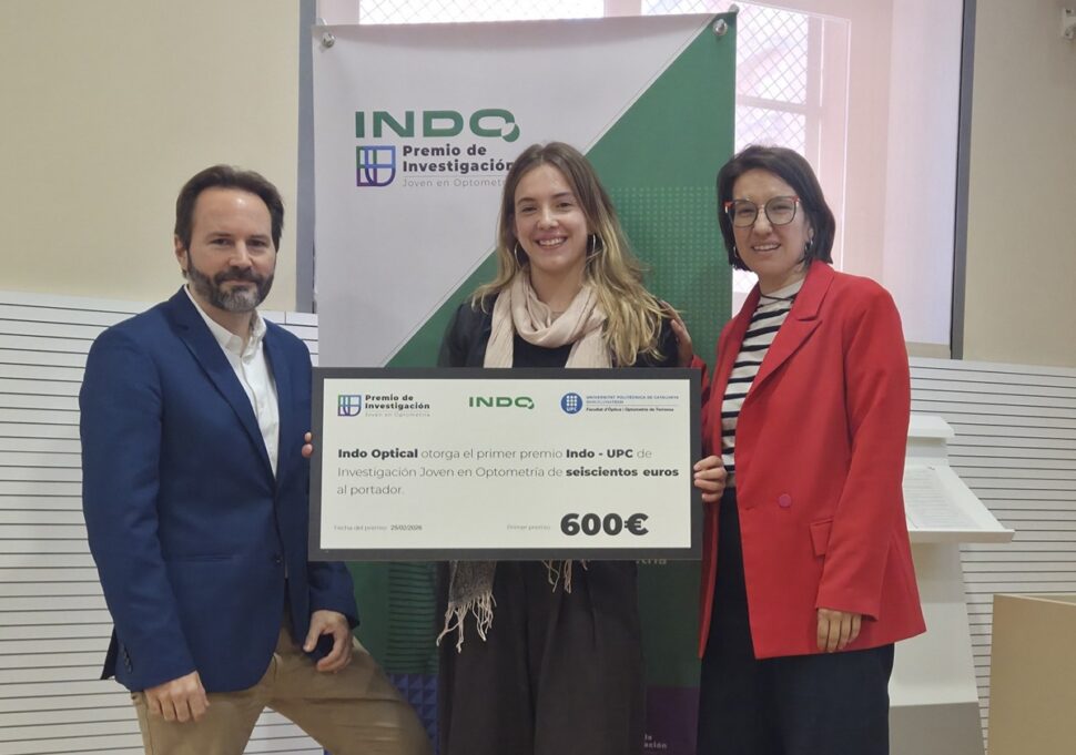 Indo refuerza su compromiso con el semillero de la óptica con el Premio Indo – UPC de investigación joven en optometría. La compañía, que pertenece a Rodenstock, ha entregado el primer premio de su certamen anual a Laia Salido Barbachano por su trabajo de máster Halometría en pacientes fáquicos jóvenes, realizado en el Máster Universitario en Optometría y Ciencias de la Visión y dirigido por la profesora Laura Clavé Cerezo.