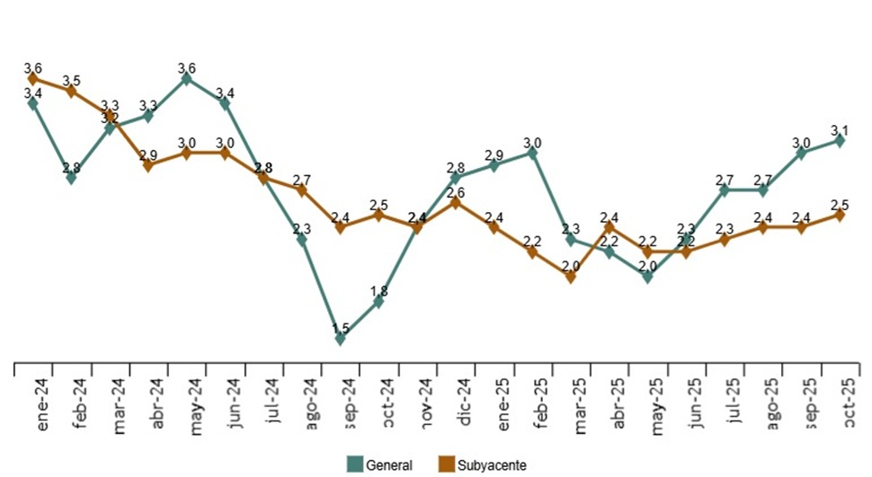 La inflación anual estimada del Índice de Precios de Consumo (IPC) en octubre de 2025 se sitúa en el 3,1%, según el indicador adelantado del Instituto Nacional de Estadística (INE). Se trata del nivel de inflación más alto del año, superando en una décima la tasa registrada en septiembre (3,0%).