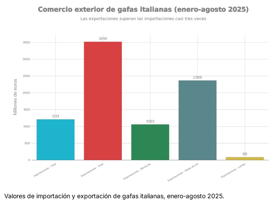 En el segmento de lentes, las empresas italianas exportaron 88 millones de euros, un incremento del 2,5% frente a 2024, según los datos de Anfao en el periodo analizado.