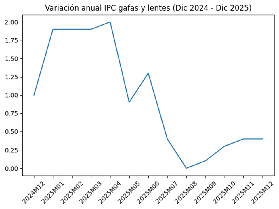 Pese a esta evolución alcista, el comportamiento de los precios de las gafas graduadas y las lentes de contacto se mantiene muy por debajo de la inflación general, que en diciembre de 2025 se situó en el 2,9 %, una décima menos que en el mes anterior.