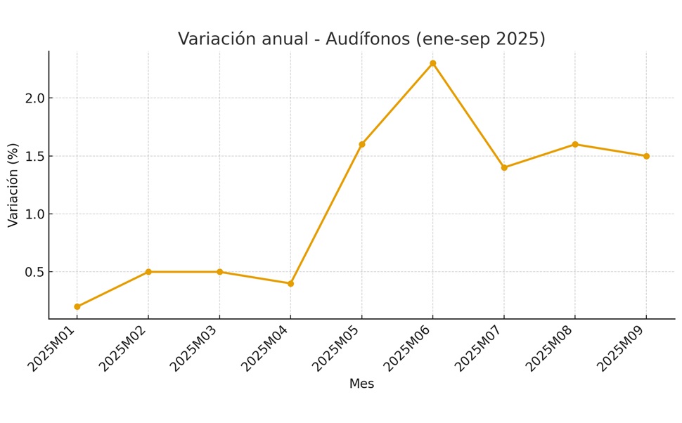 Los audífonos han mantenido la senda alcista en 2025. FUENTE: Instituto Nacional de Estadística