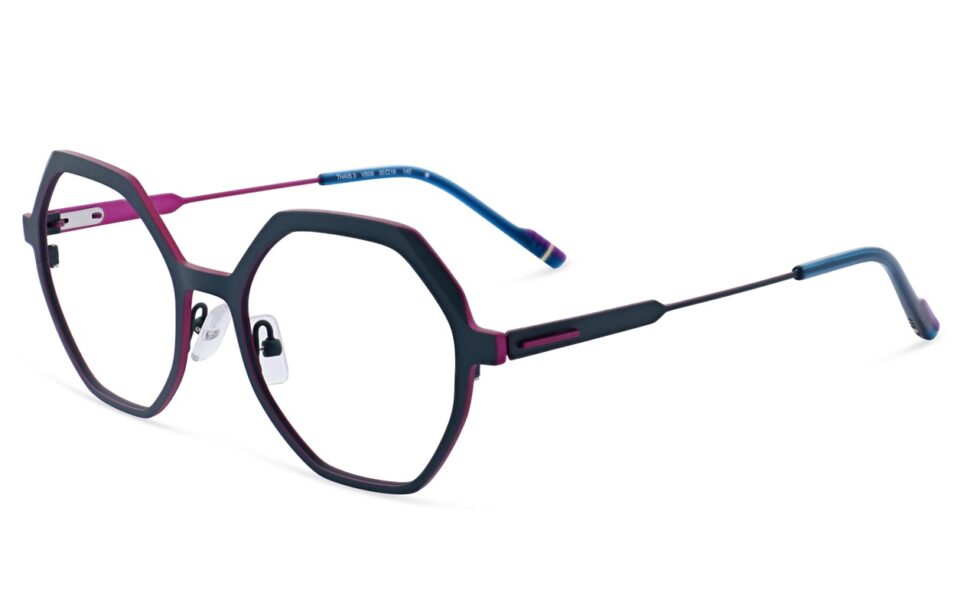 Las varillas presentan un nuevo perfil, partiendo de una base sólida que se afina hasta lograr una estructura aérea. El borde coloreado, contrastando con la superficie metálica, aporta un toque de distinción y equilibrio visual. Thaïs se define como una montura femenina, moderna y con carácter, ideal para quienes buscan elegancia sin excesos.