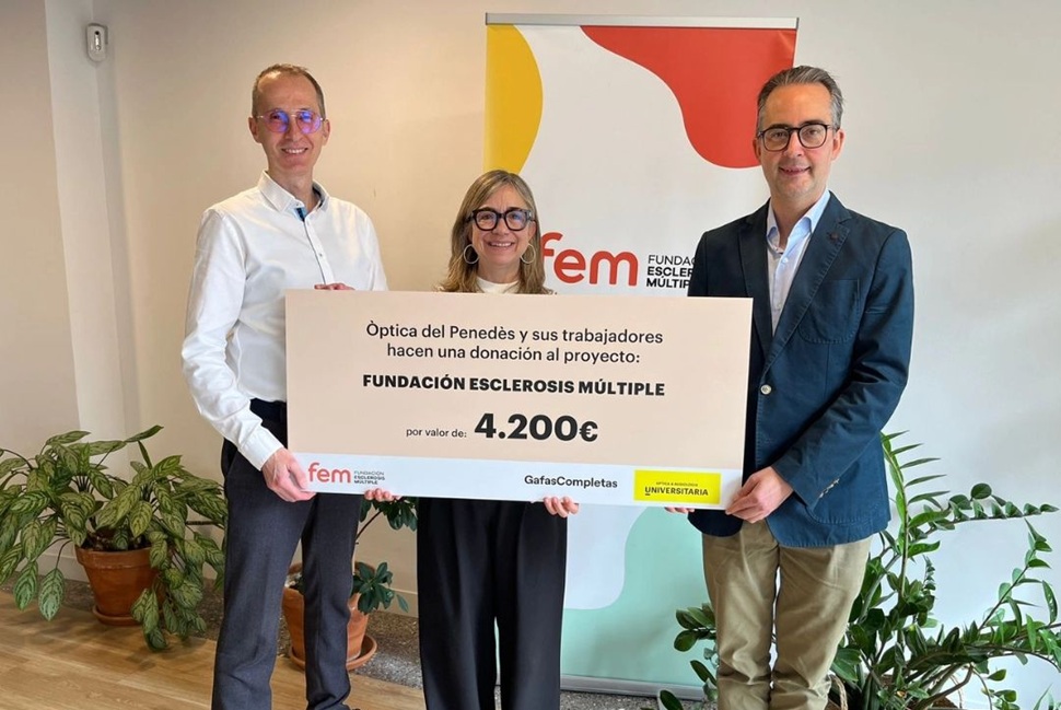 Óptica y Audiología Universitaria y sus trabajadores han donado 4.200 euros a la Fundació Esclerosi Múltiple (FEM) para apoyar los programas de atención a personas afectadas por esta enfermedad.