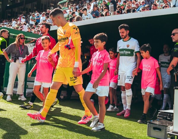 Durante el encuentro disputado frente al Athletic Club, los jugadores del Elche CF saltaron al césped acompañados por niños vestidos con una equipación oficial de Óptica Óptima, diseñada en el color corporativo de la marca