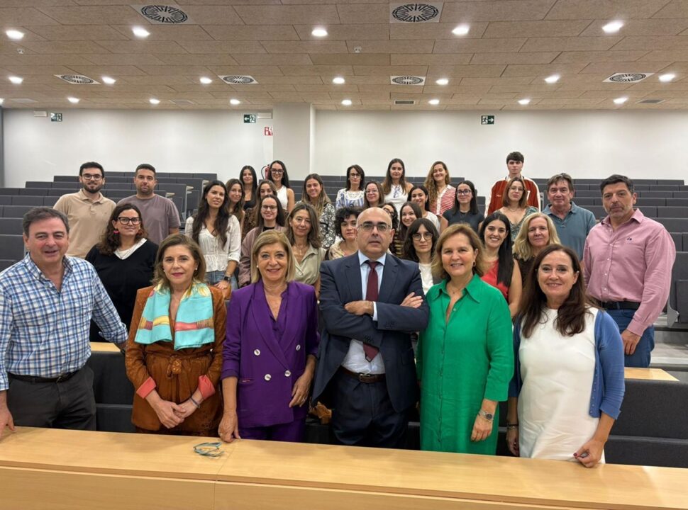 La presentación del máster contó con la participación de Blanca Fernández, decana-presidenta del Coooa, quien asistió a la conferencia inaugural impartida por el doctor Antonio Ucedo Montañés, centrada en los avances en cirugía refractiva. En el acto también estuvieron presentes la decana de la Facultad de Farmacia, María Álvarez de Sotomayor Paz, la coordinadora del máster, María del Carmen Sánchez, junto a profesorado y alumnado.