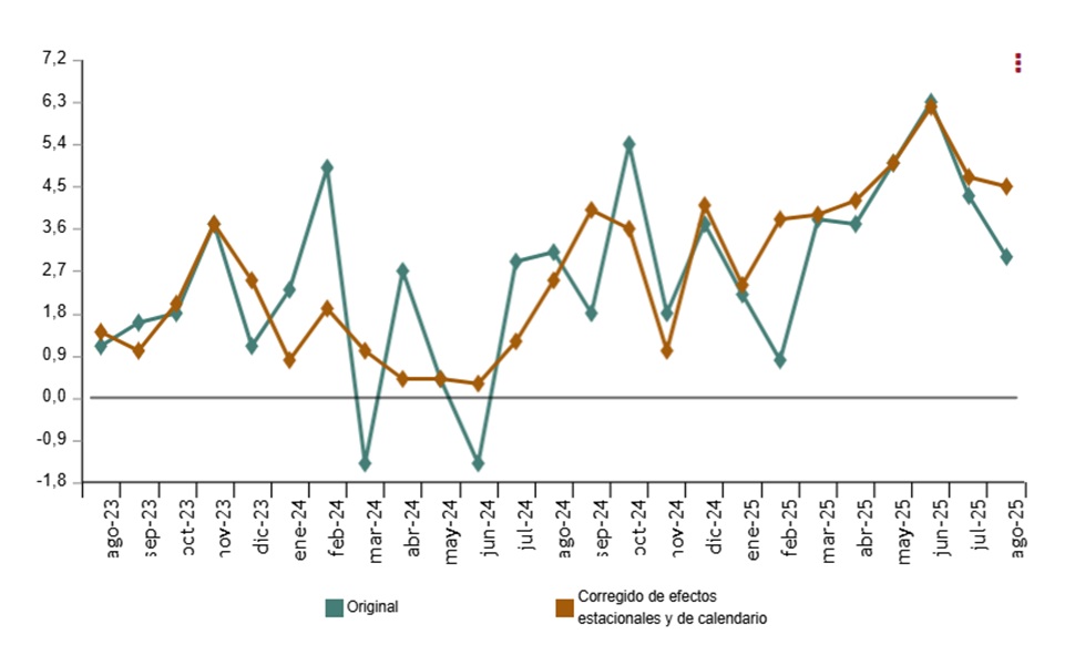 En términos mensuales, el ICM avanzó un 0,4% respecto a julio, ocho décimas por encima de la tasa previa